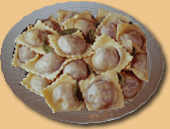 ripieno a mucchietti a intervalli regolari confezionando i ravioli.